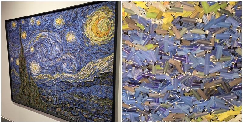 미국 출신 사진작가 조던은 2009년 태평양의 미드웨이섬에서 찍은 ‘미드웨이’ 연작 등 환경 문제를 직접 고발하는 사진으로 이름을 알렸다. ‘숫자를 따라서’ 연작은 하루에 배출되는 만큼의 병뚜껑, 플라스틱 물병 등 폐기물로 산드로 보티첼리의 ‘비너스의 탄생’, 빈센트 반 고흐의 ‘별이 빛나는 밤’ 등을 표현한 패러디물이다. 또 다른 대표작인 2018년 영상 <알바트로스>는 미드웨이섬에서 플라스틱 쓰레기 때문에 죽어가는 새 알바트로스의 모습들을 담았다. 이 작품들은 2019년 성곡미술관에서 열린 조던의 개인전 등을 통해 국내에도 소개됐다.