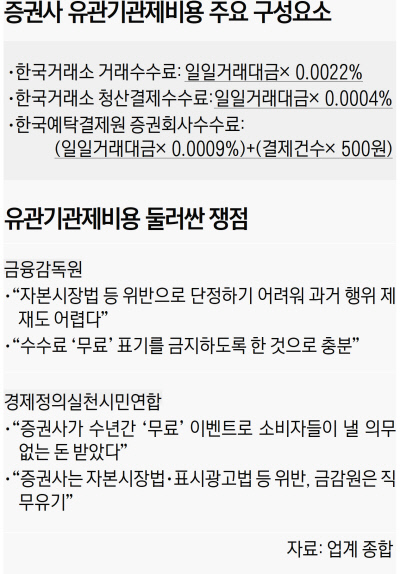 한 법조계 관계자도 “유관기관제비용이 법으로 정해진 부분이 아니라는 점에서 서로 다른 해석이 나올 수 있으나 증권사의 관행에는 문제의 여지가 있다. 금감원이 보다 적극적으로 규제할 수도 있었을 것”이라고 말했다.