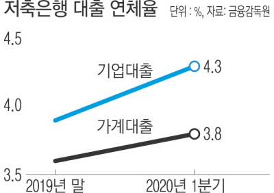 문제는 연체율도 함께 증가했다는 점이다. 저축은행 1분기 말 전체 연체율은 4.0%로 3개월 전(3.7%)보다 0.3%포인트 늘었다. 같은 기간 기업대출(3.9→4.3%) 및 가계대출 연체율(3.6→3.8%)이 모두 증가했다.