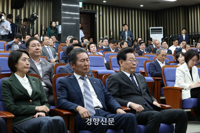 더불어민주당은 25일 의원총회에서 비이재명(비명)계를 겨냥한 강성 지지층의 공격 중단을 촉구하는 게 필요하다는 데 공감대를 이뤘다고 밝혔다. 하지만 중단 촉구 결의문을 채택은 불발됐다.