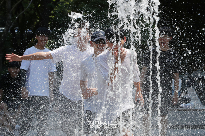 서울 최고기온이 31도에 달했던 11일 오후 광화문광장. 이순신 장군 동상과 세종문화회관 사이에 위치한 바닥분수인 ‘한글분수’에 아이들이 뛰놀고 있었다. 아이들은 옷이 젖는데도 아랑곳 않고 더위를 식히는데 여념이 없었다. 광장을 지나가는 30대 직장인 김모씨는 “사무용품을 사러 잠깐 나왔는데도 땀이 줄줄 흐른다”라며 “마음 같아선 나도 분수에서 뛰놀고 싶은 심정”이라고 말했다.
