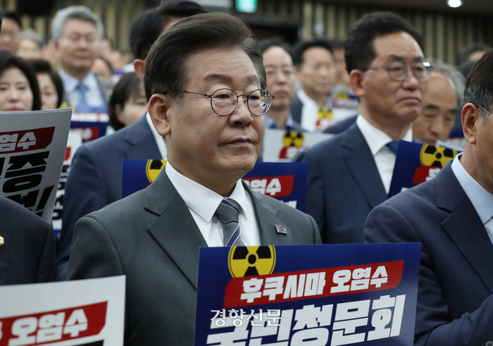 이 대표는 이날 국회에서 열린 민주당 최고위원회의에서 이같이 말했다. 이 대표는 지난 12일 국회 대정부질문 당시 한덕수 총리가 원전 오염수를 음용수 기준에 부합하면 마실 수 있다는 취지로 발언한 것을 두고 “이렇게 표현하는 게 가당키나 한 일이냐, 마실 수 있으면 일본이 왜 바다에 내다 버리겠나”라고 말했다.