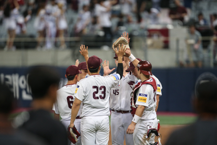 4회말 한 점을 더 준 한화는 7회초 제라드 호잉의 우월 솔로 홈런으로 다시 6-8 추격에 나섰다. 그러나 키움은 7회말 곧바로 한 점을 내 한화의 기세를 꺾었다. 박동원의 볼넷, 김혜성의 몸에 맞는 공으로 만든 무사 1·2루에서 임병욱의 희생번트, 서건창의 우익수 희생 뜬공이 차례로 나와 키움은 한 점을 더 뽑았다. 이 득점 과정에서 키움은 안타를 하나도 내지 않았고, 한화는 필승조 박상원-이태양을 차례로 소진하며 키움의 9-6 리드를 허용했다.