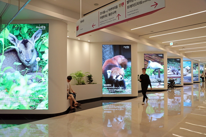 서울 강남구 코엑스 내부 스크린에 서울대공원에서 지내는 멸종 위기 동물 14종의 모습과 관련 정보가 공개된다.