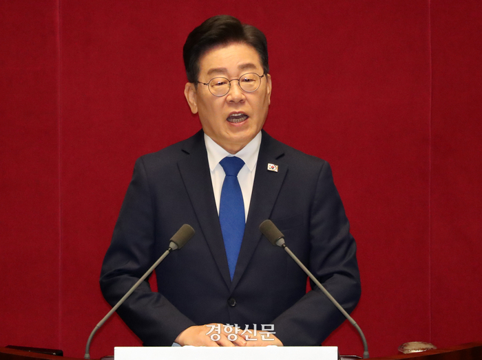 이 대표는 이날 약 48분간의 연설을 윤석열 정부 비판에 할애했다. 이 대표는 “출범 1년 만에 윤석열 정권은 민생, 경제, 정치, 외교, 안전을 포기했고, 국가 그 자체인 국민을 포기했다”며 “5포 정권, 국민포기정권”이라고 말했다. 이 대표는 “무리한 초부자 감세로 부동산·자산·금융·사업소득 세수는 수십조원까지 줄어 ‘세수 펑크’를 불렀다”며 “국민 삶이 힘들고 경제가 어려워도 ‘무대책이 대책’이라는 정부로 인해 우리 경제는 날개 없이 추락하고 있다”고 말했다.