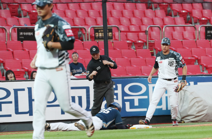 그러나 볼카운트 2-1에서 박민우가 자신있게 받아친 공은 투수 주권의 글러브로 빨려들어갔다. 주권은 재빨리 공을 3루로 던졌고, 3루주자 권희동보다 공이 더 빨리 3루수 황재균의 글러브에 닿았다. NC는 비디오 판독을 요청했지만 판정은 바뀌지 않았다. 1사 만루 기회가 무산되고 3아웃이 됐다. KT가 5회말 무사 2·3루 기회를 잘 살려 결승점 포함 3점을 낸 것과는 대조됐다.