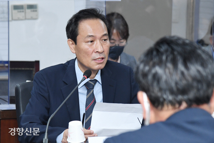 우상호 비상대책위원장은 이날 경기 안산시 상록구에 위치한 도금업체 유일금속을 찾아 납품단가 연동제 현장 간담회를 진행했다. 납품단가 연동제는 원자재 가격이 급등할 때 하도급업체가 이를 납품단가에 반영하는 것을 의무화하는 제도다. 우 위원장은 인사말에서 “민주당은 지난해 관련 법안을 발의했고 대선 공약으로 약속드린 바 있다. 국민의힘 또한 연동제 도입에 긍정적인 입장으로 안다”며 “하루빨리 국회를 정상화시켜 납품단가 연동제 문제를 매듭짓도록 하겠다”고 말했다.
