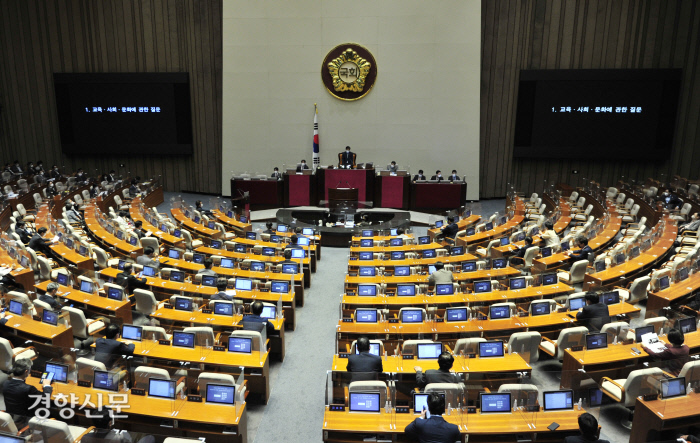 1가구 1주택자의 재산세율 감면 헤택 기준을 공시가격 6억원 이하에서 9억원 이하로 확대하는 지방세법 개정안도 본회의를 통과했다. 다만 장혜영 정의당 의원은 반대 토론에서 “이 법을 통과시키는 것은 무한집값 상승 신화 앞에 국회가 두 손을 들고 백기를 휘날리는 것과 마찬가지”라고 말했다.