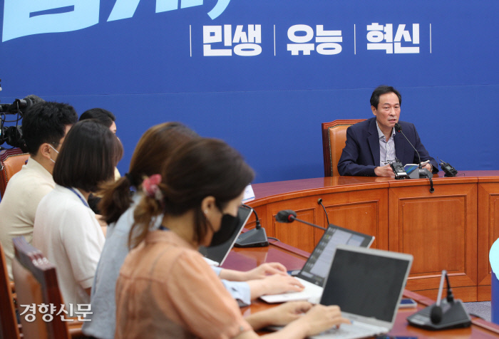 우 위원장은 민주당이 6·1 지방선거 패배 후 윤호중·박지현 공동위원장 체제 비대위가 사퇴하자 8월 전당대회까지 당을 이끌어가는 비대위원장으로 지난달 10일 중앙위원회에서 인준됐다. ‘대선 평가도 부족했다’는 당내 지적을 받아들여 선수별·의견그룹별 평가의 장을 만들었고 8월 전당대회 규칙도 지난 6일 확정했다.