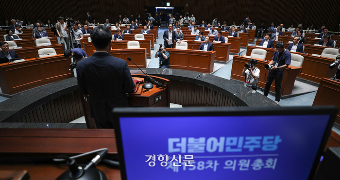 김한규 민주당 원내대변인은 이날 국회에서 의원총회를 마친 뒤 “지난 의총에서 논의됐던 불체포특권에 대한 의원들의 총의를 모으는 과정이 있었다”며 “특별히 이견 밝힌 분이 없어서 총의를 모아 정당한 영장 청구에 대해서는 민주당이 불체포특권을 내려놓겠다는 의견을 모았다”고 말했다.