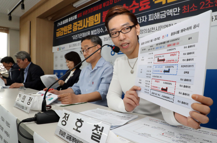 정의정 한국주식투자자연합회 대표는 “증권사들이 한 행위는 마트에서 1만원짜리 수박을 무료라고 해놓고 밑에 조그맣게 농민 수수료 3000원 별도라고 표기하는 것과 같은 행위”라며 “100원을 훔쳐도 돈을 훔친 것인데 증권사들이 소액이라고 죄의식 없이 10년 넘게 금융소비자를 속였다”고 비판했다.
