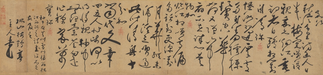 도자기와 수묵화 중에서는 일본에서 개인이 소장하던 15~16세기의 ‘백자 청화 산수·인물무늬 전접시’, 일본의 기메박물관이 소장한 16세기 후반의 ‘십장생도’ 등이 연구자들 사이에만 알려져 있다가 국내에 최초로 전시되고 있다. 국립중앙박물관이 지난해 강원 강릉 오죽헌시립박물관으로부터 기증받은 보물인 황기로(1521~1575?)의 ‘초서’도 최초 공개됐다. ‘석봉’이라는 호로 더 잘 알려진 한호가 쓴 <천자문>도 볼 수 있다.