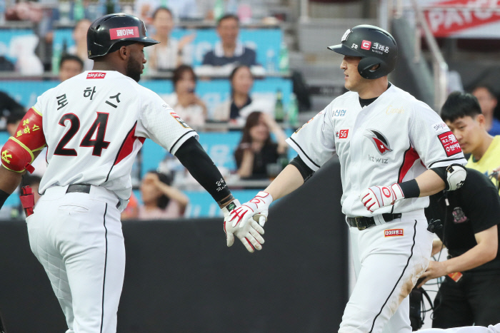 KT는 7회부터 전유수-주권-마무리 이대은이 1이닝을 무실점으로 막아내며 리드를 끝까지 지켜냈다. 지난달 23일 수원 NC전부터 이어온 연승 행진을 6연승(1무 포함)으로 늘려 팀 창단 후 최다 기록을 세웠다. 선발들이 6이닝 이상 제몫을 다해 실점을 최소화하고, 타선이 적재적소에 득점을 내 승리하는 공식이 이날도 들어맞았다. 함께 5위 자리를 넘보던 7위 삼성과의 승차를 2경기로 벌렸고, 이날 광주에서 KIA에게 3-5로 패한 5위 NC와의 격차도 2경기로 좁혔다. 7월 첫 주 가을야구 마지노선인 5위 등극도 기대해볼 수 있게 됐다.
