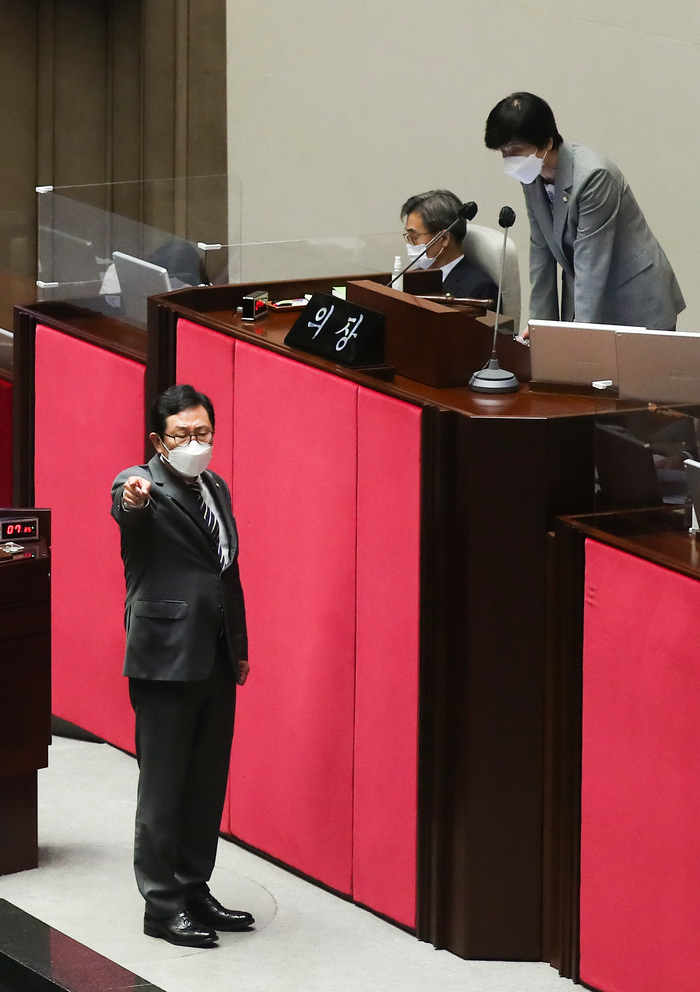 국민의당 의석 쪽에서 고함이 터져나왔고, 다음 질의자로 나선 조명희 국민의힘 의원은 신 의원의 사과를 요구했다. 김한정 민주당 의원도 “내년 세수가 줄어들 전망이고, 기업들은 (투자를) 망설이고 있는데 대기업에 (세금) 4조 원을 깎아주면 힘들고 어려운 국민한테 갈 재정은 어떻게 되느냐”고 말했다.