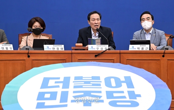 우상호 민주당 비상대책위원장은 이날 국회에서 열린 비상대책위원회의에서 “대한민국이 대통령 한 명 바뀌었을 뿐인데, 이렇게 바뀔 수 있냐고 한탄하는 국민들이 늘어나고 있다”고 말했다. 우 위원장은 최근 감사원의 국민권익위원회 감사, 검찰의 통일부·과학기술정보통신부·여성가족부 압수수색을 언급하며 “한쪽으로는 임기제 공무원을 물러나게 하려는 정치공작을 벌이며 한편으로는 전 정권의 인사 문제를 수사하는 이중적 태도는 고치지 않고 있다”고 말했다.
