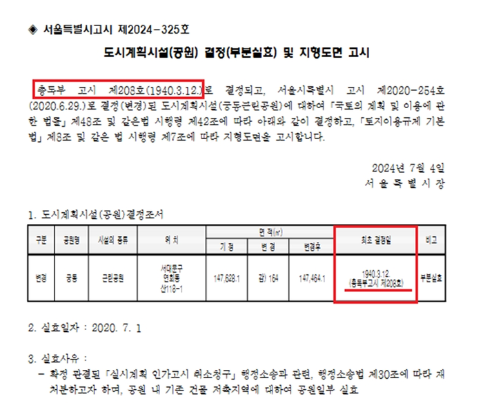 “총독부 고시 제○○○호로 결정되고, 서울시 고시로 제○○○호로 변경된 도시계획시설에 대하여~”라는 문구가 쓰였던 것이다.