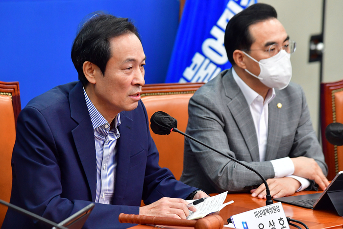 박홍근 원내대표는 전날 출범한 국민의힘 비대위를 ‘친윤 완전체’로 칭하며 “대통령실 사적 채용 의혹으로 구설 올랐던 20년 검찰지기인 전 광주시장 후보(주기환)가 비대위원이 됐다. ‘윤핵관’ 원내대표(권성동) 재신임에 이어 특혜수주 의혹으로 탈당했던 윤핵관 사돈 의원(박덕흠)은 사무총장으로 내정됐다”고 지적했다.