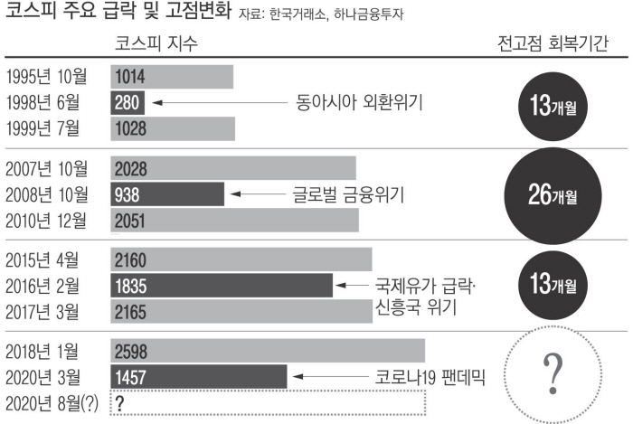 김학균 신영증권 리서치센터장은 “다른 나라들의 코로나19 확산세는 한국보다 심각했으나 주가가 크게 흔들리지 않았다”며 “코스피 대장주들의 하락폭이 크지는 않았다. 주요 상장사들이 상반기 실적을 잇달아 발표한 가운데 ‘옥석 가리기’가 벌어졌을 가능성이 있다”고 말했다.