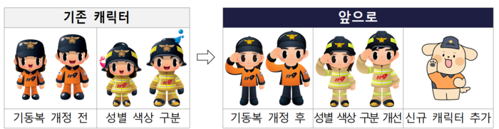 소방청이 7년 만에 캐릭터의 모습을 바꿨다. 기존 캐릭터의 의상을 바꾸고 구조견 캐릭터도 추가했다.