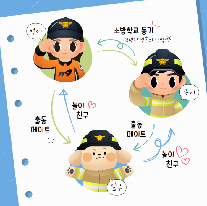 추가된 캐릭터 일구는 119구조견의 이미지에서 본떴으며, 디자인 선정부터 이름 추천까지 국민이 직접 참여했다고 소방청은 전했다.