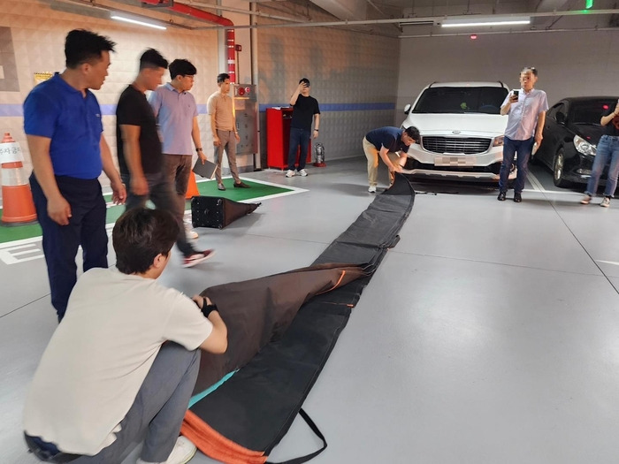 용산구도 지난 19일 관내 공영주차장 7곳에 질식소화 덮개와 화재대응복, 내열장갑, 방연보안경 및 마스크를 설치했다.