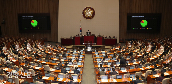 민주당이 4·7 재·보궐선거 참패 이후 개정을 추진했던 종부세법 개정안도 이날 함께 본회의를 통과했다. 민주당은 당초 1가구 1주택자 종부세 과세기준을 공시가격 상위 2%로 추진했으나 국민의힘과 협의 과정에서 정액인 11억원으로 변경했다. 가결된 법안은 올해부터 적용된다. 장혜영 정의당 의원은 반대 토론에서 “지금 종부세(기준)를 완화하는 것은 오히려 주거불안을 더욱 고조시킬 뿐”이라고 비판했다.