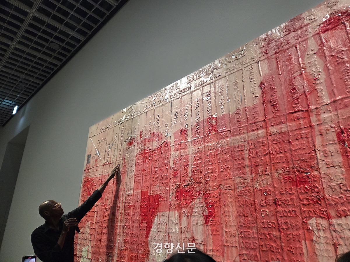미국 로스앤젤레스 출신의 흑인 작가 마크 브래드포드(64)는 자신이 살아 온 궤적과 관련된 이런 독특한 소재들로 ‘사회적 추상화’로 불리는 작품들을 선보여왔다. 그는 2017년 베니스비엔날레 미국관의 대표 작가였으며, 2021년에서는 타임지가 선정한 ‘세계에서 가장 영향력 있는 인물 100인에도 뽑혔다. 지난 1일 서울 용산구 아모레퍼시픽미술관에서 개막한 브래드포드의 국내 첫 개인전 ‘Keep Walking’은 지난해부터 독일 함부르크반호프 미술관이 연 순회전의 일환으로, 그의 경험에서 비롯된 예술 세계가 녹아있는 작품 40여점을 만날 기회다.