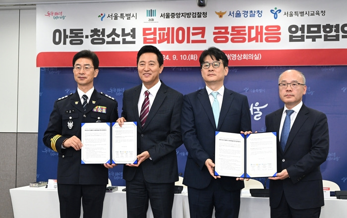 서울시는 10일 서울시청에서 서울중앙지검, 서울경찰청, 서울시교육청과 ‘아동·청소년 딥페이크 공동대응을 위한 업무협약’을 체결했다며 이같이 밝혔다.