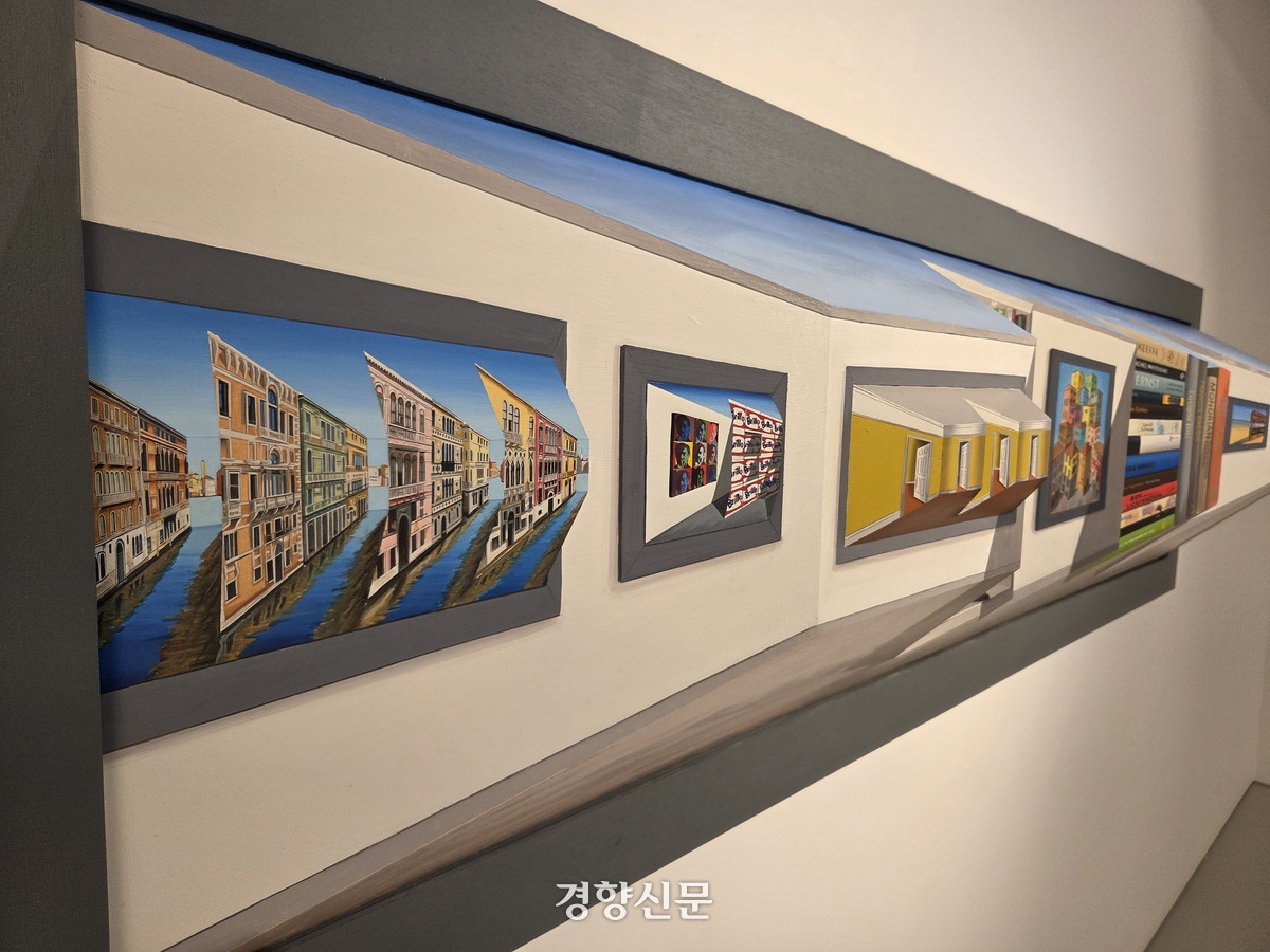 서울 용산구 박여숙화랑이 지난 2일 문을 연 영국 출신 초현실주의 작가 패트릭 휴즈(86)의 개인전은 ‘리버스펙티브’(Reverspective)라 불리는 그림으로 보는 이들에게 독특한 경험을 안겨준다. 이달 초 열린 국내 최대 미술품 장터(아트페어) 키아프에서도 이런 독특한 휴즈의 리버스펙티브 작품들은 보는 이들의 적잖은 관심을 끌었다. 부스에 내걸린 그의 그림 앞에 서면 이따금 보는 이들의 탄성이 들릴 정도였다. 휴즈의 개인전을 15년 만에 연 박여숙화랑의 박여숙 대표는 “젊은이들부터 어린아이들까지도 휴즈의 작품에 관심을 보이고 좋아했다. 자녀가 부모에게 그림을 사달라고 졸라 실제 판매되는 일도 있었다”고 말했다.