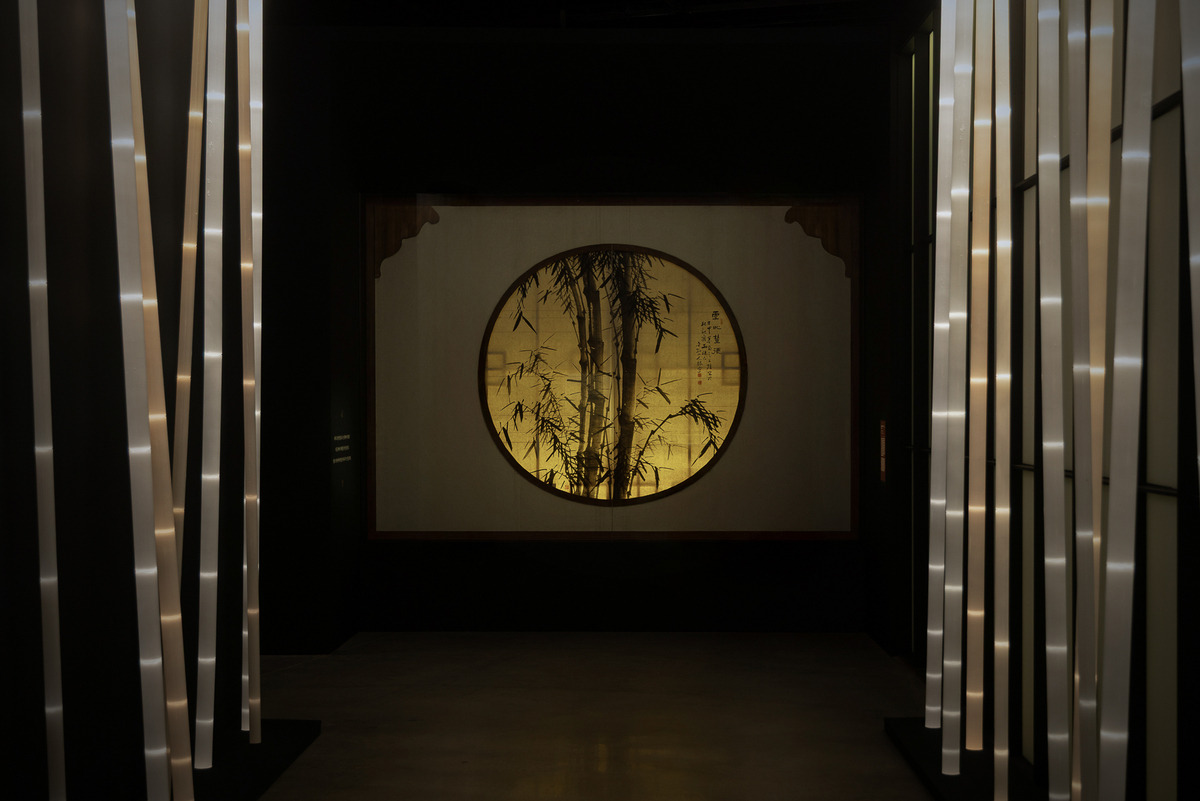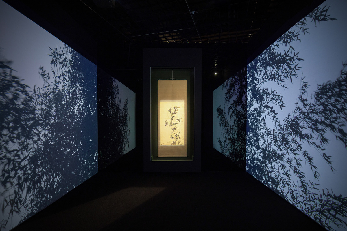 대구 수성구 대구간송미술관에서 지난 23일 개막한 광복 80주년 기념 전시 ‘삼청도도 - 매·죽·난, 멈추지 않는 이야기’에서는 풍죽을 입체적으로 느낄 수 있다. 별도 전시 공간간에 들어가면 정면에 ‘풍죽’이 보이고 양쪽 벽면에는 바람에 흔들리는 대나무 숲 영상이 소리와 함께 펼쳐진다. 영상이 거울에 반사되면서 이정의 풍죽은 숲 한가운데 서 있는 것처럼 보이게 된다. 지면과 평행하게 뻗은 먹빛 대나무 잎이 바람을 타고 뻗은 것만 같다. 묵죽화(墨竹畵)의 대가였던 이정의 뛰어난 표현력 덕도 크다.