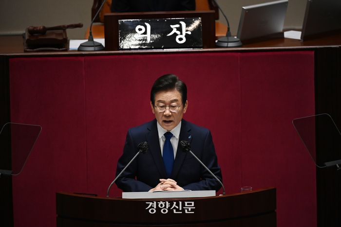 이 대표는 또 “(북한의) 7차 핵실험이 임박했다는 징후도 뚜렷하다. 평화적 위기다. 새로운 해법이 필요하다”며 20대 대선 공약으로 내걸었던 조건부 제재 완화와 단계적 동시 행동을 제안했다. 이 대표는 “문재인 정부의 ‘한반도 평화 프로세스’를 계승·발전시켜 ‘한반도 평화경제체제’를 수립하겠다”고 했다. 그는 “2020년 유엔 안전보장이사회는 경기도의 ‘대북 온실 건설용 자재 지원’ 사업에 제재를 풀고 승인한 바 있다”며 “남북의 결단만 있다면 유엔 제재는 넘을 수도 있는 벽”이라고 했다.