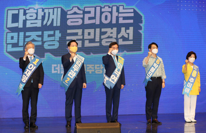 이낙연 전 민주당 대표는 이날 오전 “대구·경북 메가시티를 한국의 신 제조업 수도로 만들겠다”는 공약을 발표했다. 오후에는 예정에 없던 강원 지역 공약까지 꺼내며 “평화의 댐을 활용해 설악산~금강산을 세계문화유산으로 발전시키겠다”고 밝혔다. 지난 3일에는 강원 강릉시에서 소상공인·자영업자·상인연합회 사람들을 만나고 강릉 중앙시장을 방문하면서 지지를 호소했다. 자가격리 중인 정세균 전 국무총리는 이날 첨단 벤처타운 설립 등 대구·경북지역 공약 발표와 함께 대구 동구, 경북 고령·성주 지역민들과의 비대면 간담회를 열었다. 추미애 전 법무부 장관은 경북 구미·포항 지역 당원들과, 박용진 의원은 강원 강릉지역 당원들과 각각 만나는 등 지역 밀착 행보를 했다.
