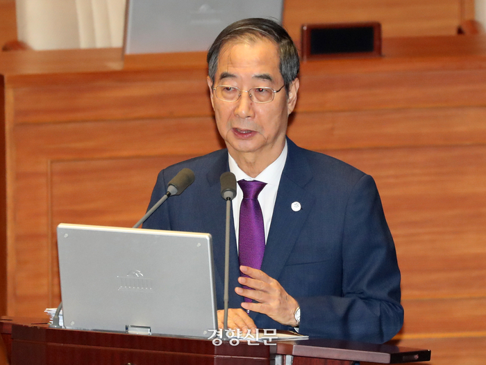 한 총리는 이날 국회 경제분야 대정부질문 도중 정동만 국민의힘 의원이 “지난 대선에서 대장동 의혹 당사자인 김만배씨가 금품을 주고 윤석열 당시 대통령 후보자의 낙마를 의도한 허위 인터뷰를 사주한 것으로 알고 있는데 이에 대해 어떻게 생각하느냐”고 묻자 이렇게 답했다.
