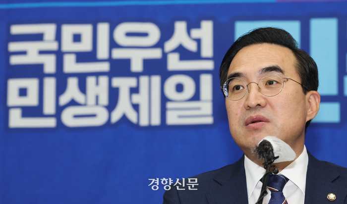 박 원내대표는 검찰의 이재명 민주당 대표 공직선거법 위반 수사에 대해 “여러 전문가들도 ‘도저히 기소할 수 없는 사건’이라고 한다”며 “야당 대표를 어떻게든 엮어보려는 기획 표적 수사로 보는 것”이라고 말했다. 그는 “(윤석열 정부가) 추락한 지지율을 사정정국 통해 돌파하려는 시도는 오히려 국민의 심판을 받게 될 것을 명심하기 바란다”고 말했다.